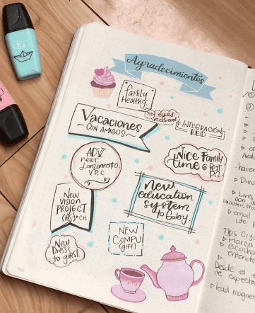 - Al finalizar cada mes, aparta una página en tu agenda, titulada de la forma que mas te guste, puede ser; “Agradecimientos del Mes”, “Bendiciones” o “Lo mejor del mes”.