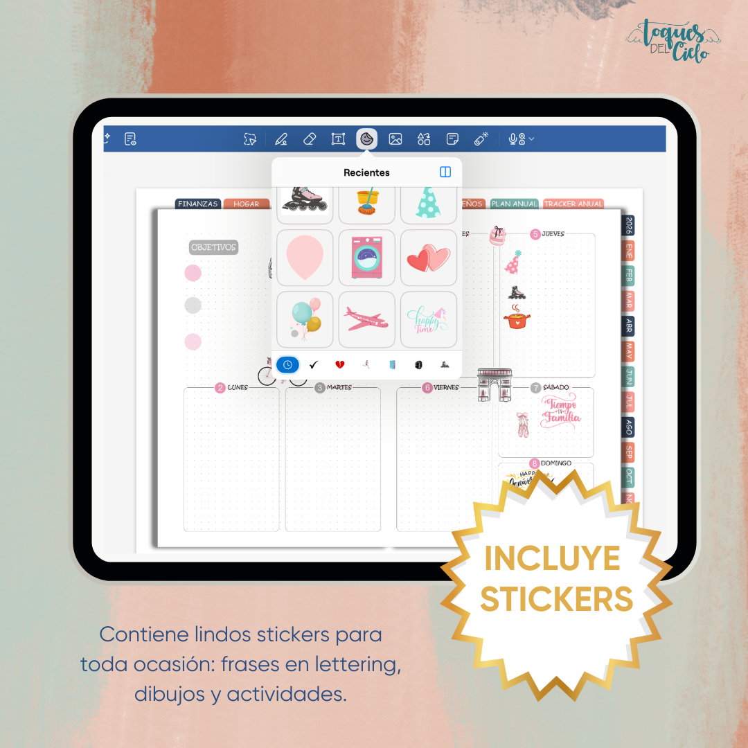 Diseñada para usar en aplicaciones como GoodNotes (es la app mas usada en planeación digital), también funciona muy bien en Notability, Noteshelf, Samsung Notes.